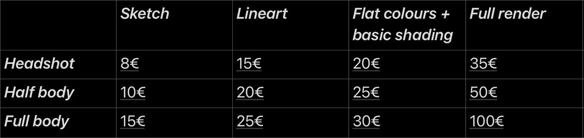 Time range is flexible. There is a rush fee of 10€No refunds. I have the right to refuse any request and/or commissions.